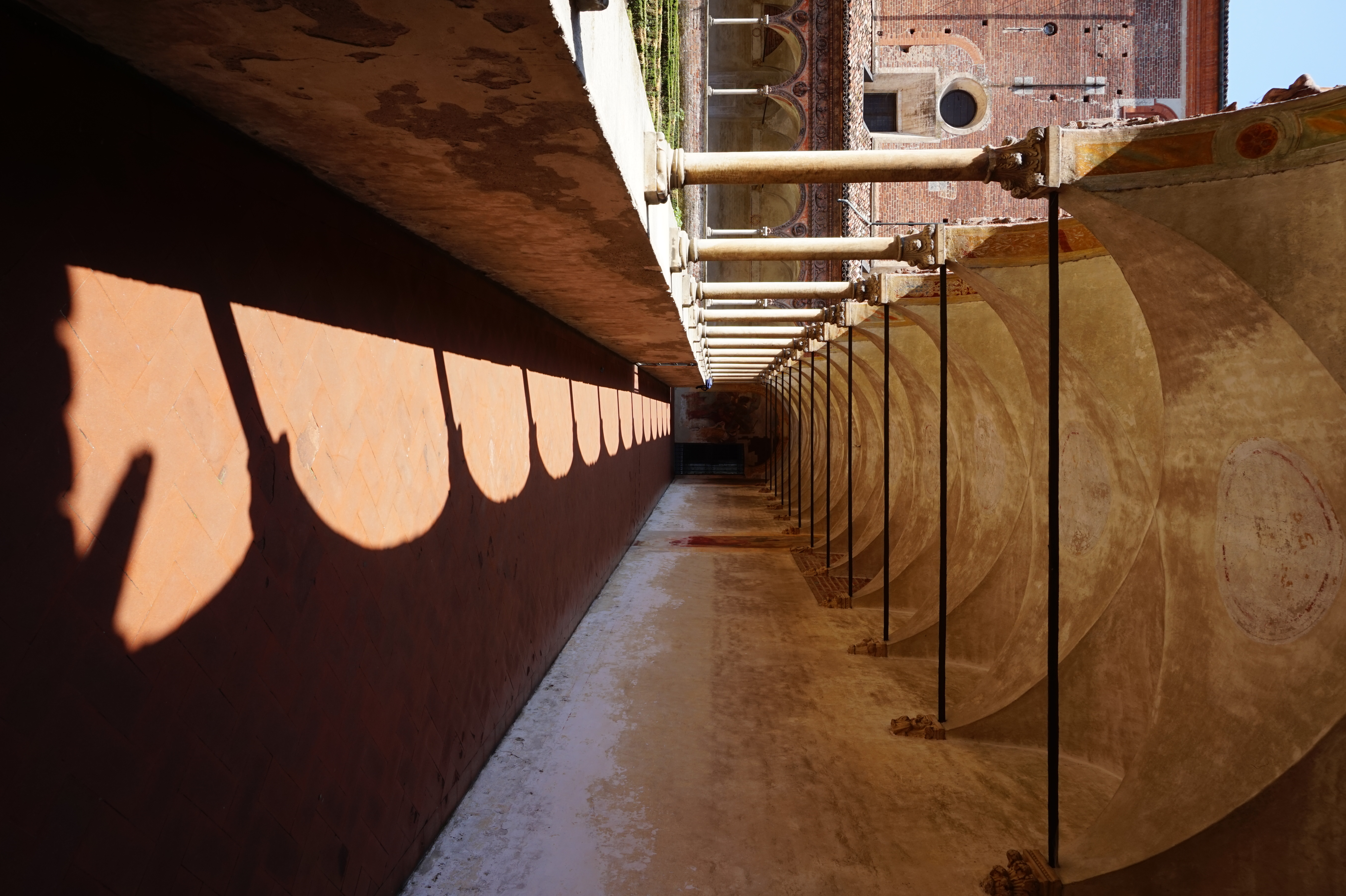 Questo aspetto, che esula strettamente dall'intervento di restauro, influisce in modo significativo sul contesto architettonico in quanto comporta un accumulo idrico all'interno dell'invaso del chiostro che presumibilmente compromette l'efficacia delle soluzioni mirate al restauro.