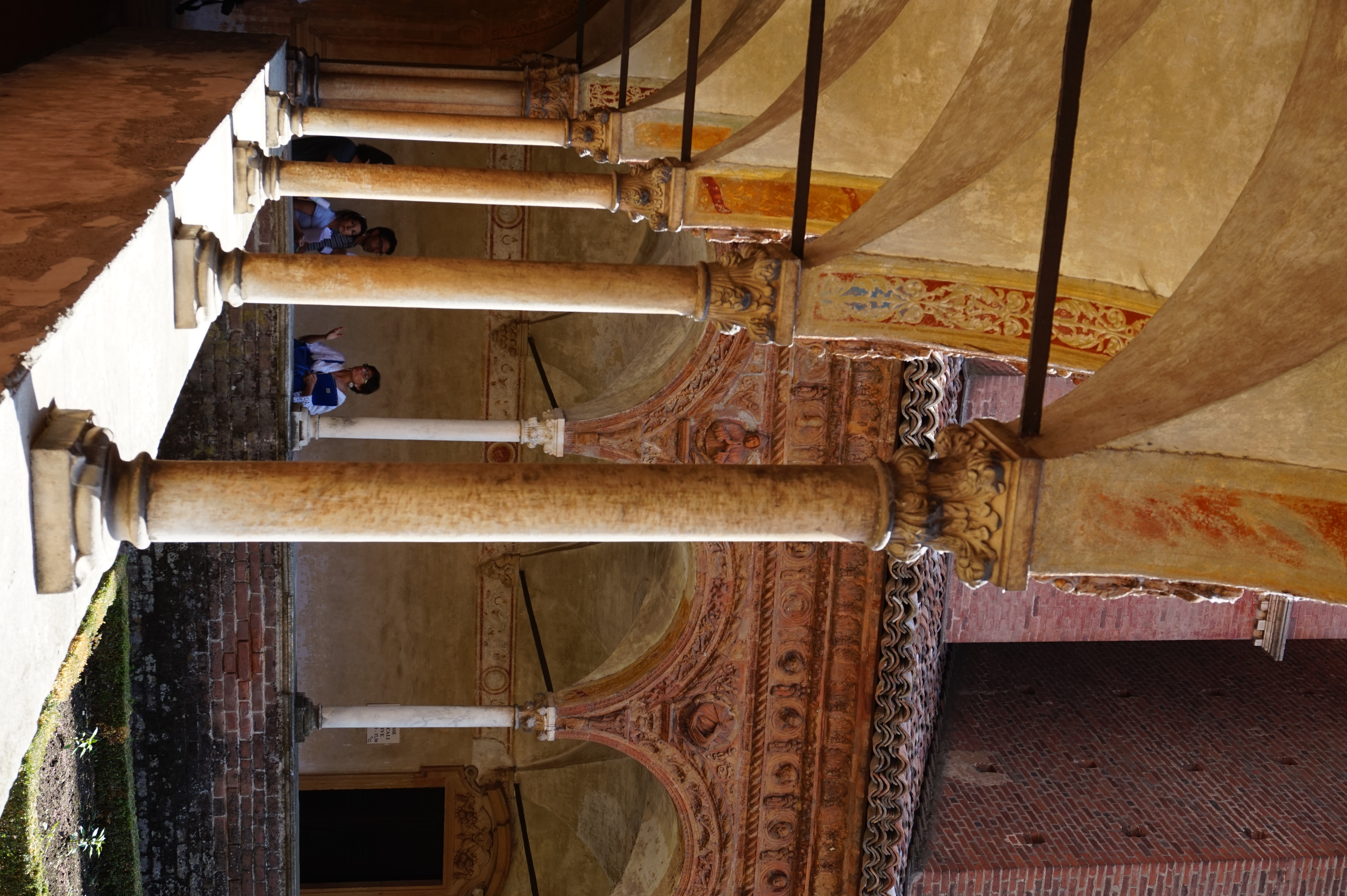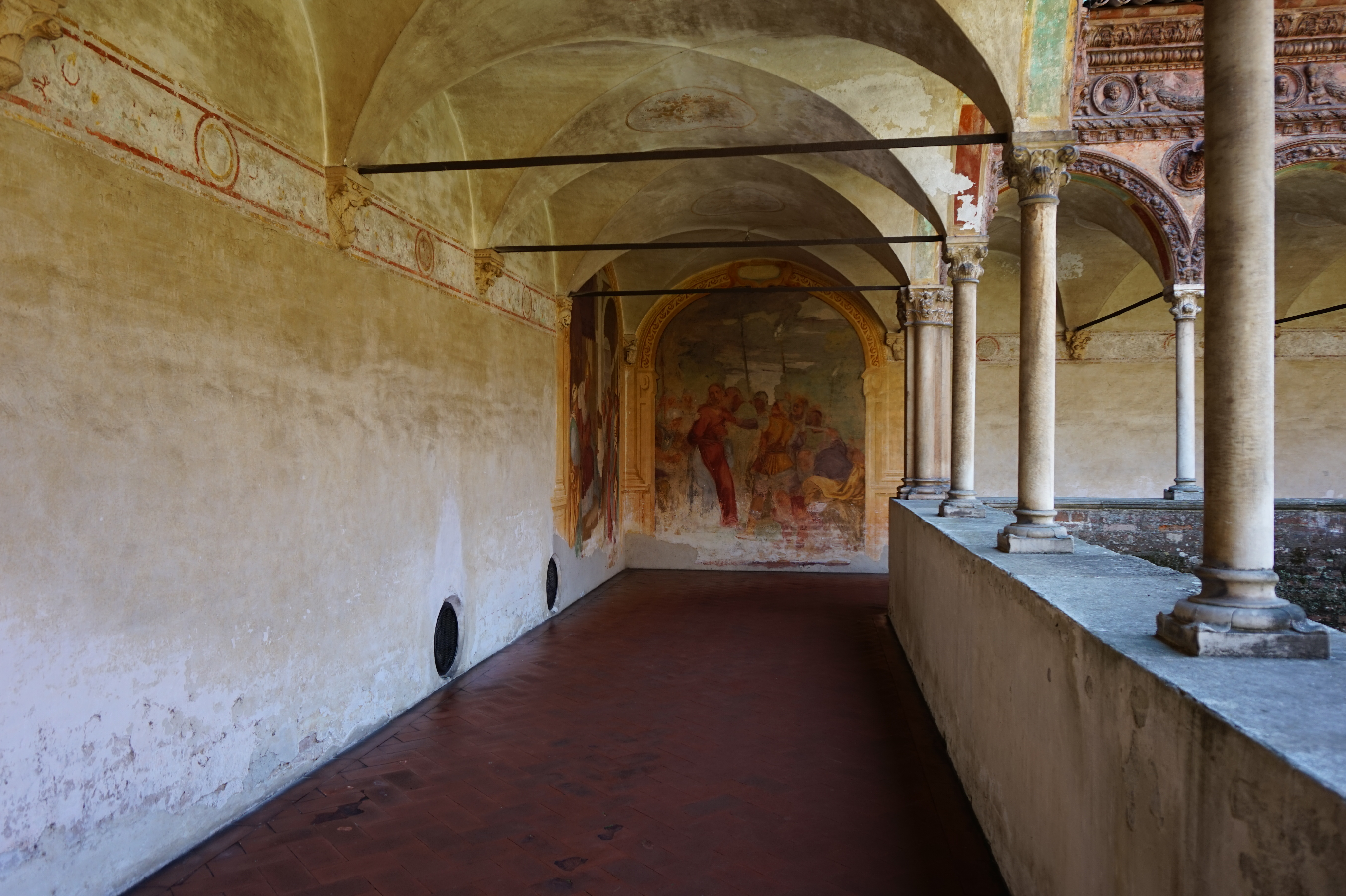 L’intervento di restauro verte su tutto il Chiostro Piccolo comprensivo delle superfici intonacate, volte e camminamenti coperti, dipinti murali, strutture marmoree del colonnato, muretto di parapetto in laterizio, e le terracotte decorative che sono l’aspetto più rilevante dell’intervento complessivo.
